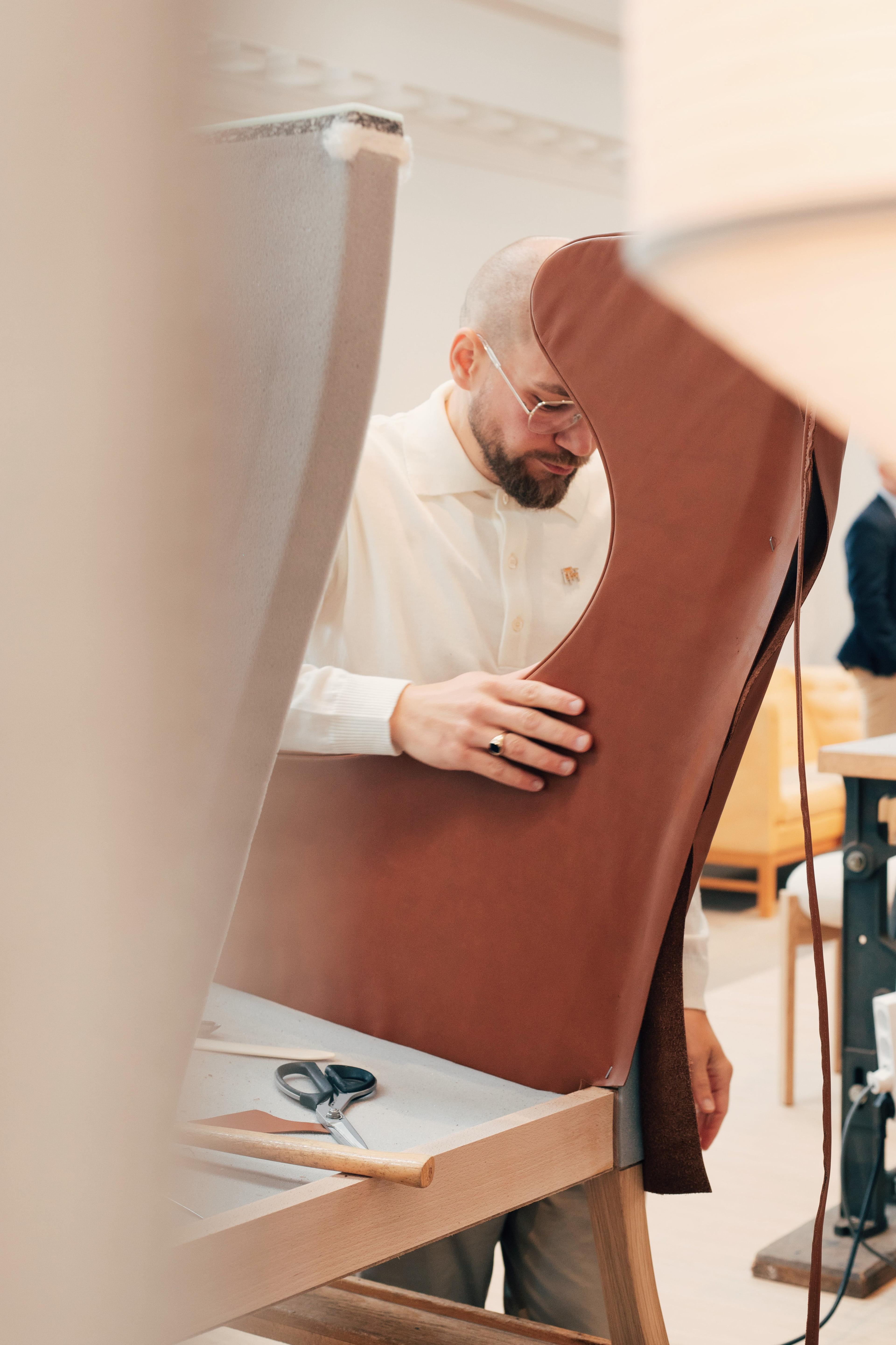 To highlight Fredericia’s rich design heritage and values, we hosted the exhibition 'Crafting The Present.' Curated by designer Maria Bruun, the exhibition spotlighted skilled artisans, their tools, and the intricate processes behind some of Fredericia Furniture's most celebrated designs.
