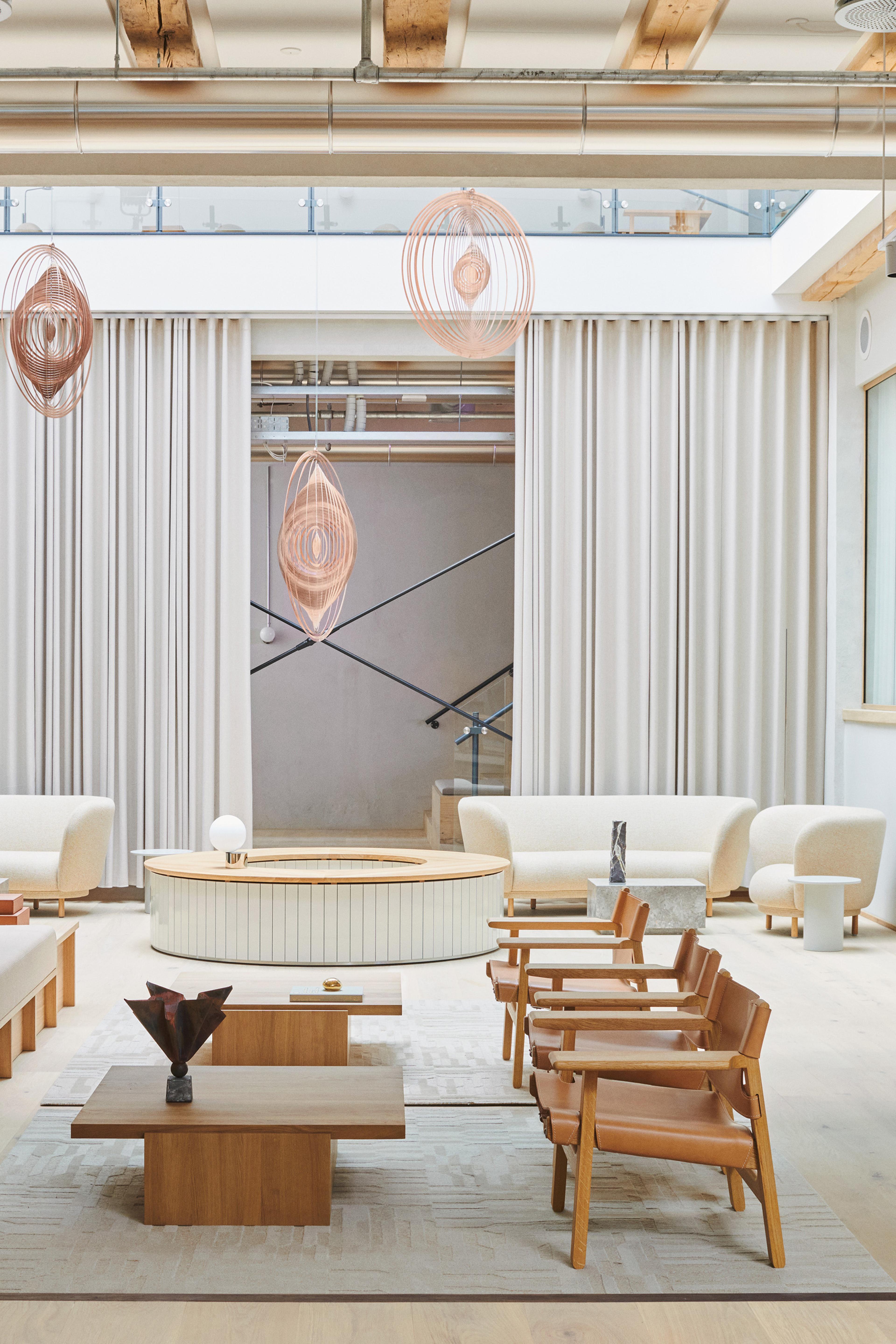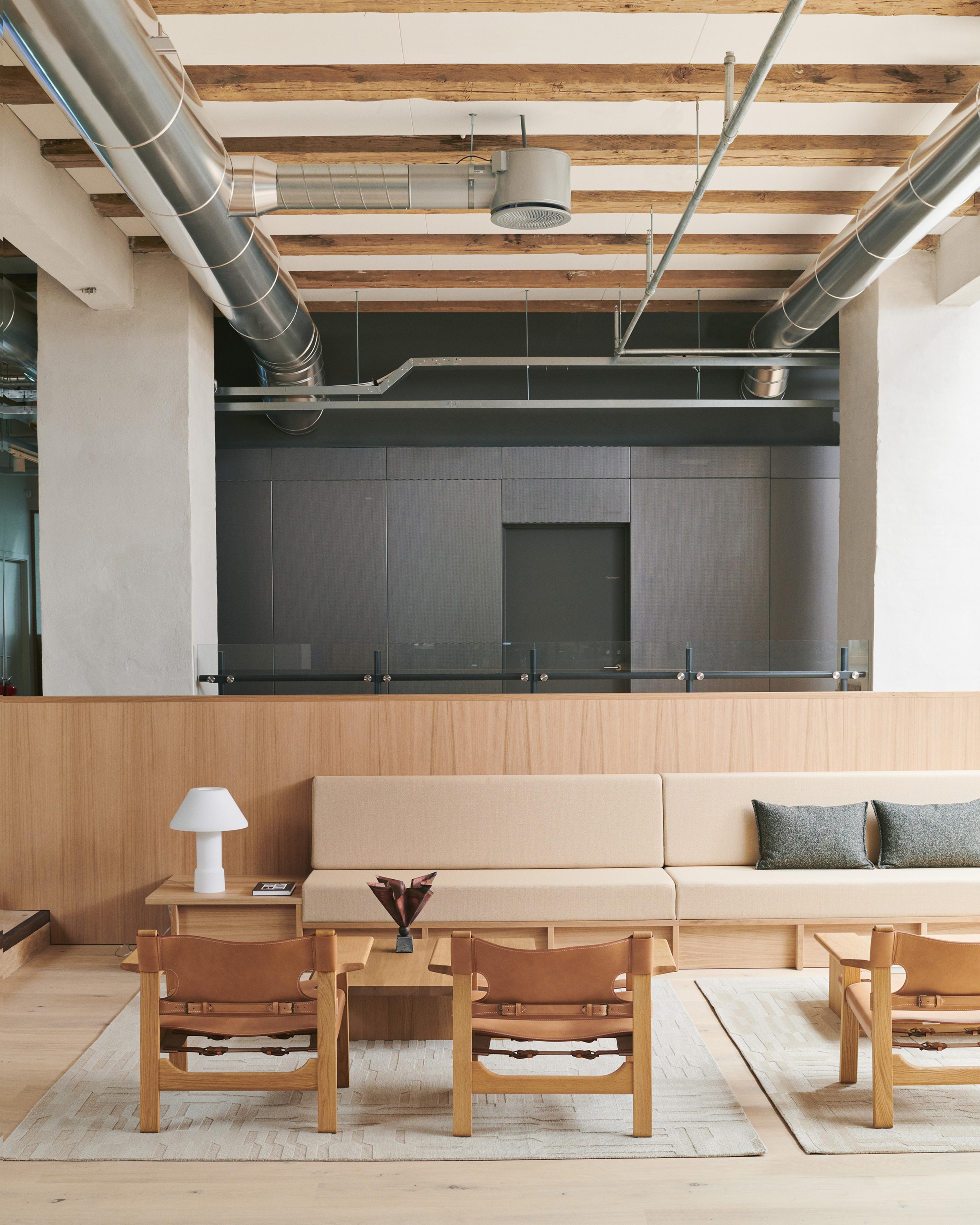 Durability is a key principle, with furniture crafted from natural materials that age gracefully, promoting maintenance and repair as integral practices. Paying homage to local heritage, the office incorporates elements of Danish culture, including iconic designs such as Børge Mogensen’s Spanish Chair.