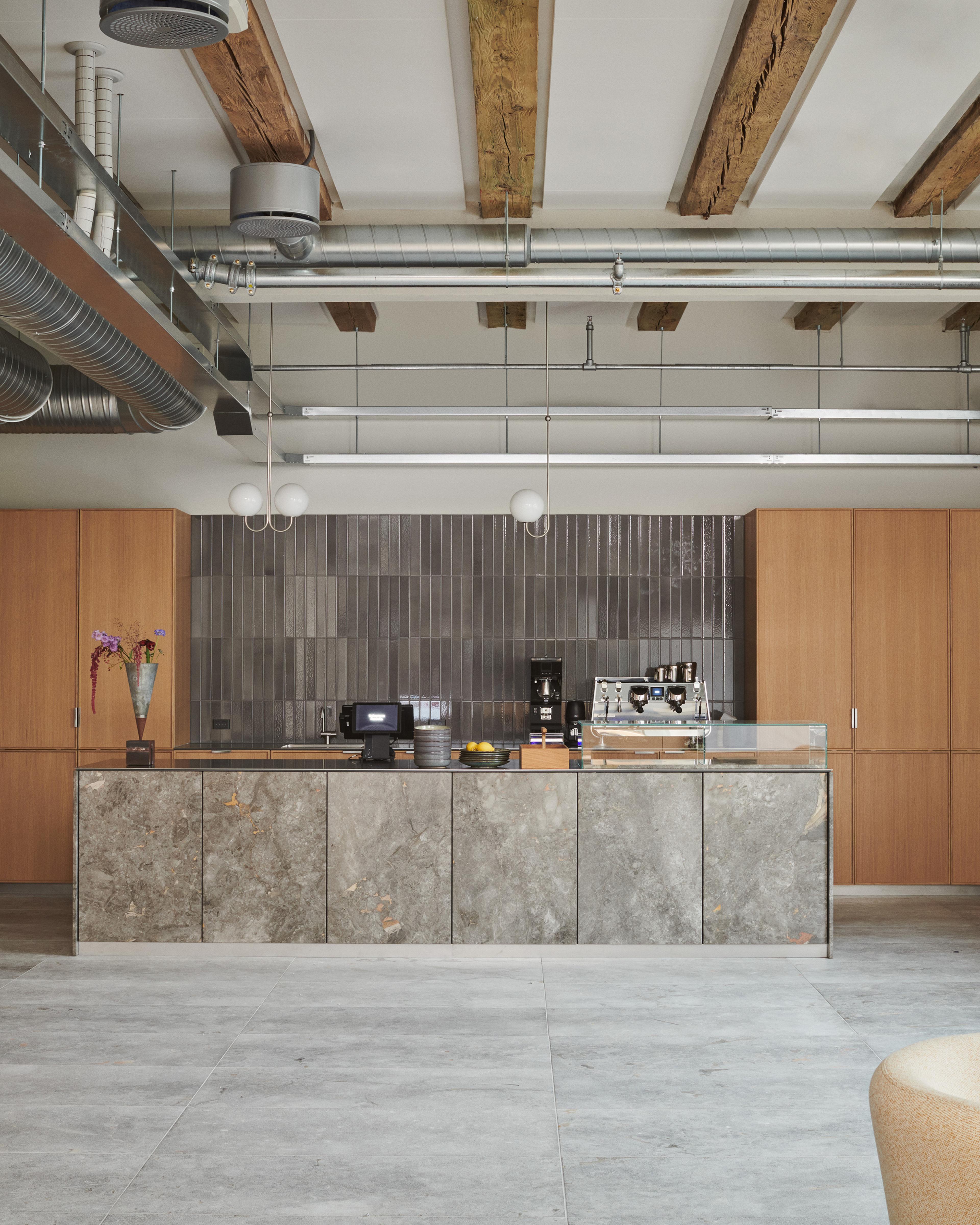 With a focus on urban integration, the design and architecture firm BRIQ reimagined the space as a versatile second home, accommodating the diverse demands of hybrid working. From private, focused zones to open, collaborative areas, the design supports flexibility and functionality.
