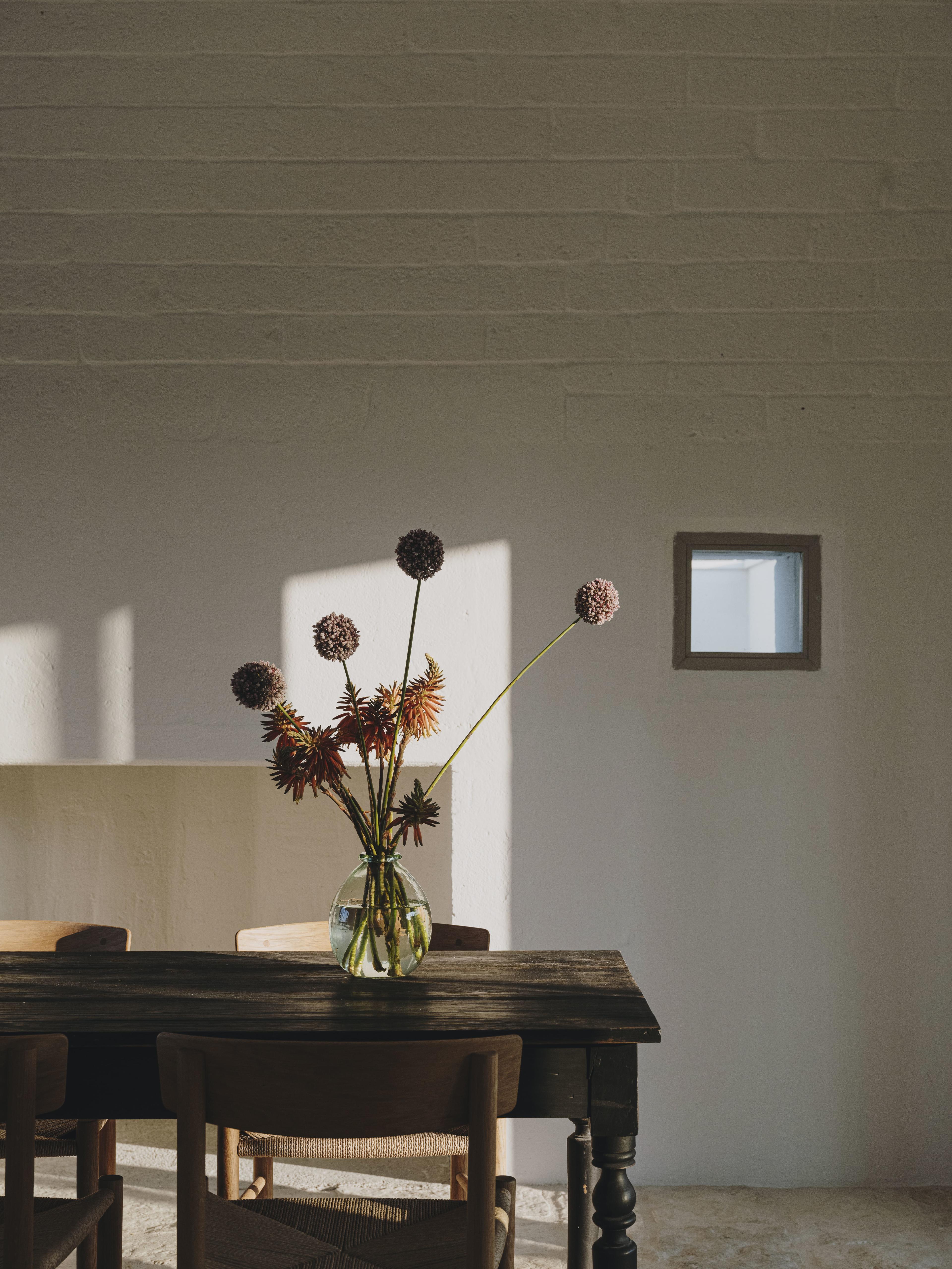 Inside, Villa Cardo balances rustic charm with understated elegance. Iconic pieces like the J39 Chair by Børge Mogensen provide a sophisticated contrast to stone walls and muted tones. Every detail, from the minimalist decor to the considered design, creates a welcoming retreat that blends seamlessly with the villa’s historic roots.
