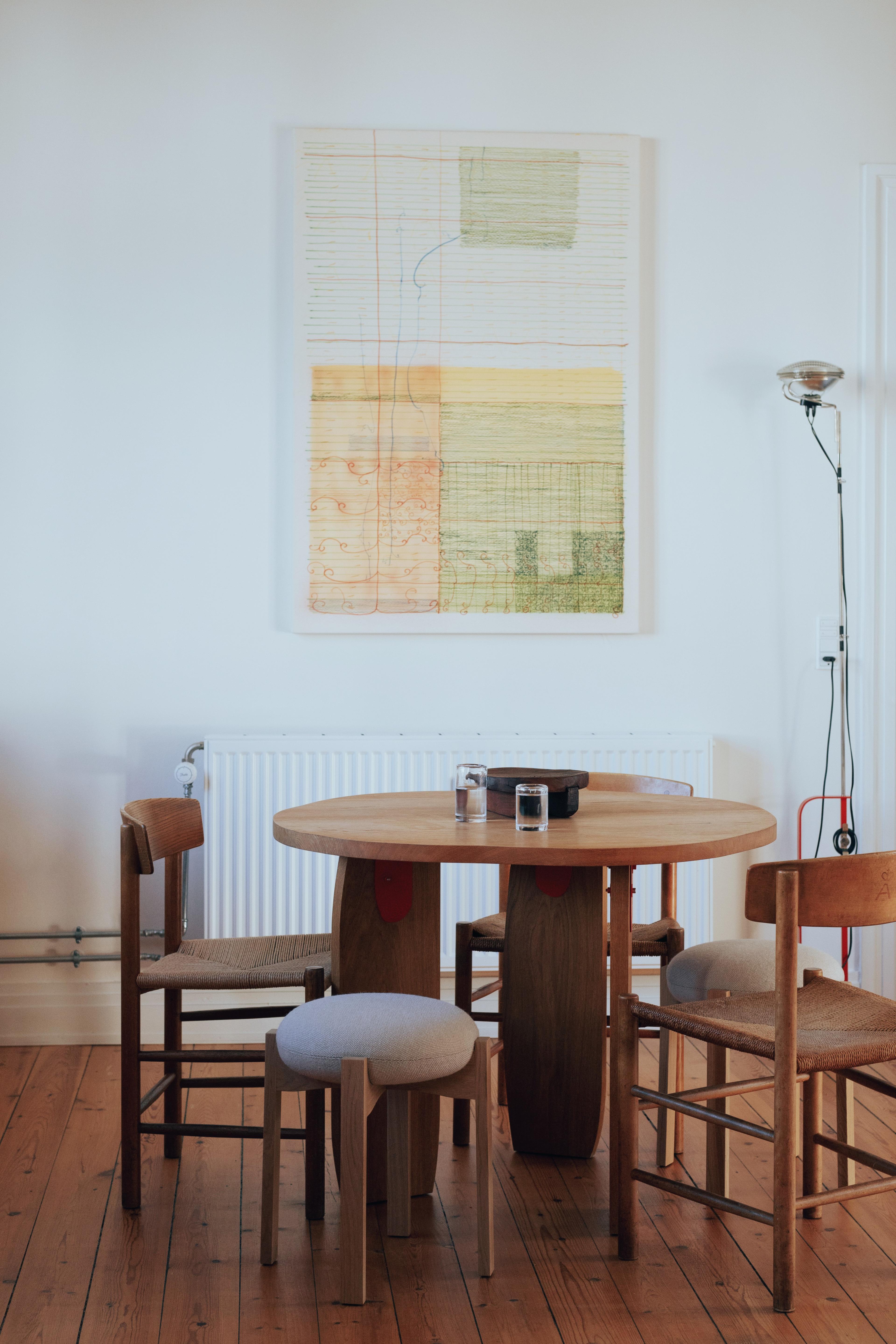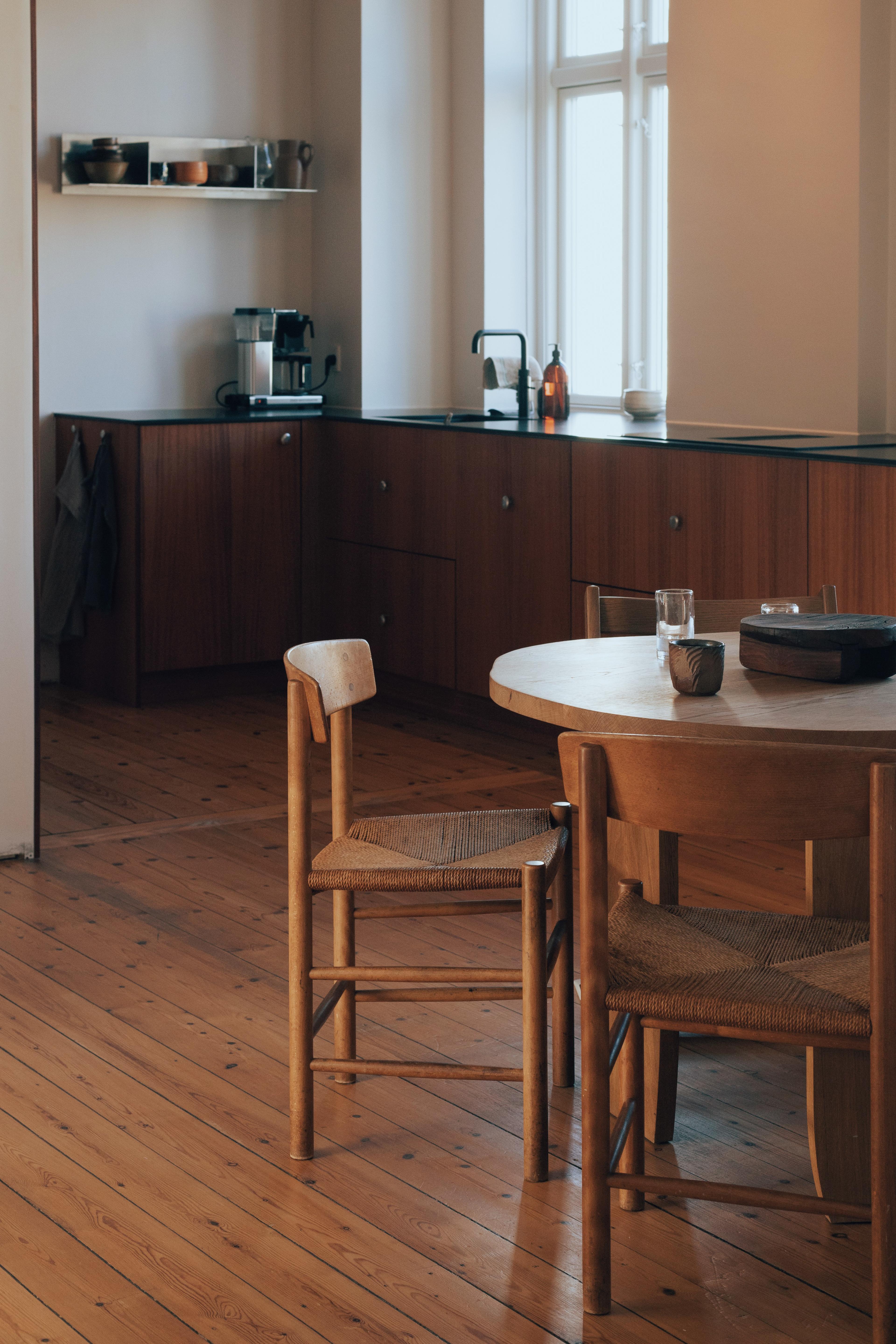 Among the cherished pieces in their home are vintage J39 chairs, brought by both Luna and Jeppe when they moved in together. For Luna, these chairs carry special significance, having been passed down from her father, who acquired them while studying architecture at the academy in the early 1970s.