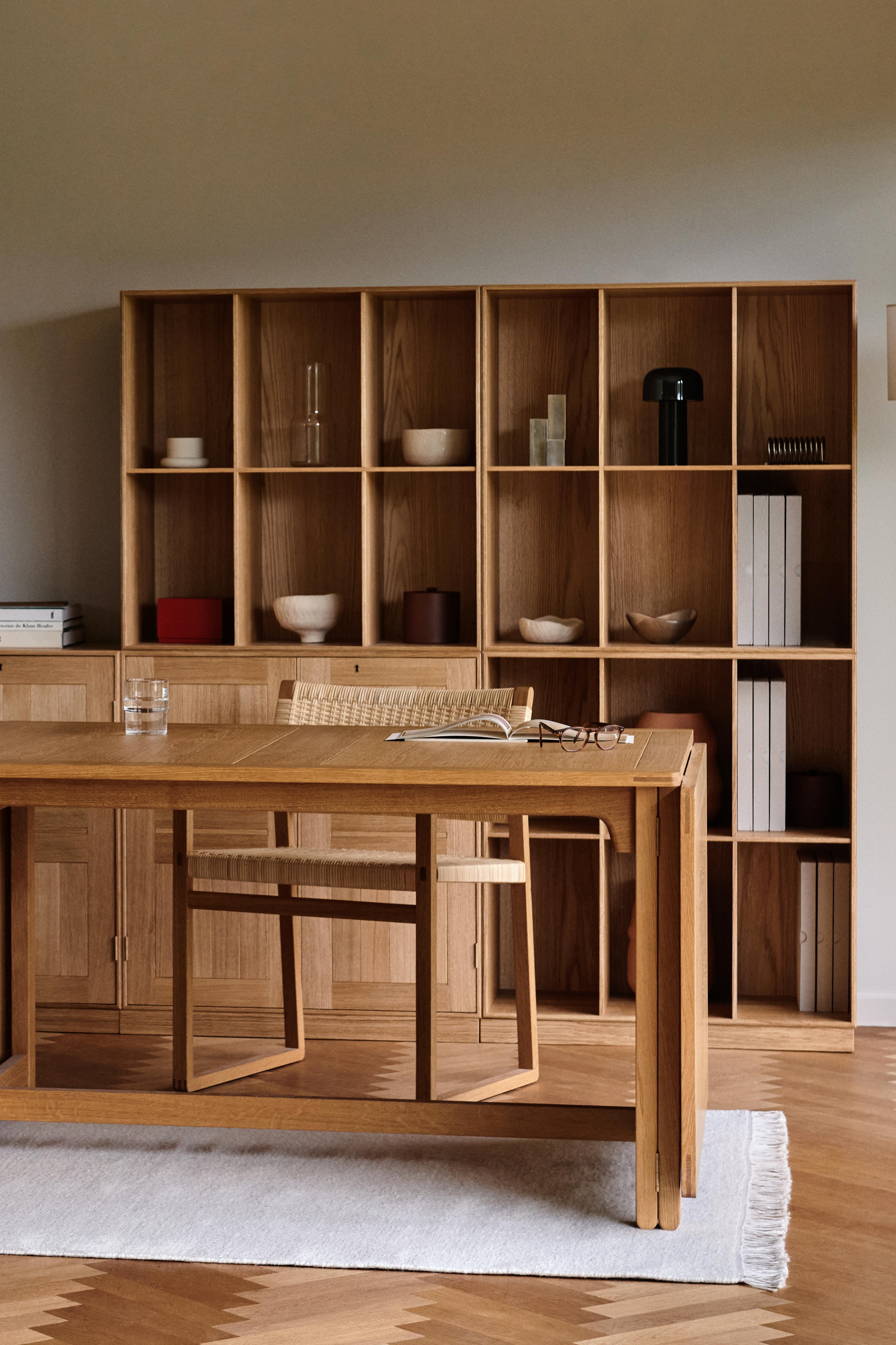 The MK Bookcase System was born from necessity. Mogens Koch sought a practical solution for storing books of varying heights, a universal dilemma, suited to dynamic domestic spaces. His answer was as elegant as it was intelligent: a modular square unit with six compartments, allowing configurations to be changed simply by repositioning. With no moving parts, the design remains as intuitive today as it was nearly a century ago. Koch reduced the thickness of each shelf and side panel to its absolute minimum to maximise storage capacity. Only the finest solid wood could meet such demands. From the first model in 1928, Koch went on to develop the system further until 1962, guided by the ambition to create a design capable of meeting all requirements. Over the decades, the MK Bookcase has earned its status as a valuable family heirloom, passed on through generations. Koch believed that the purest forms are those that transcend fleeting fashions. This is why the simplest thing, like a well-crafted bookcase, is forever contemporary.