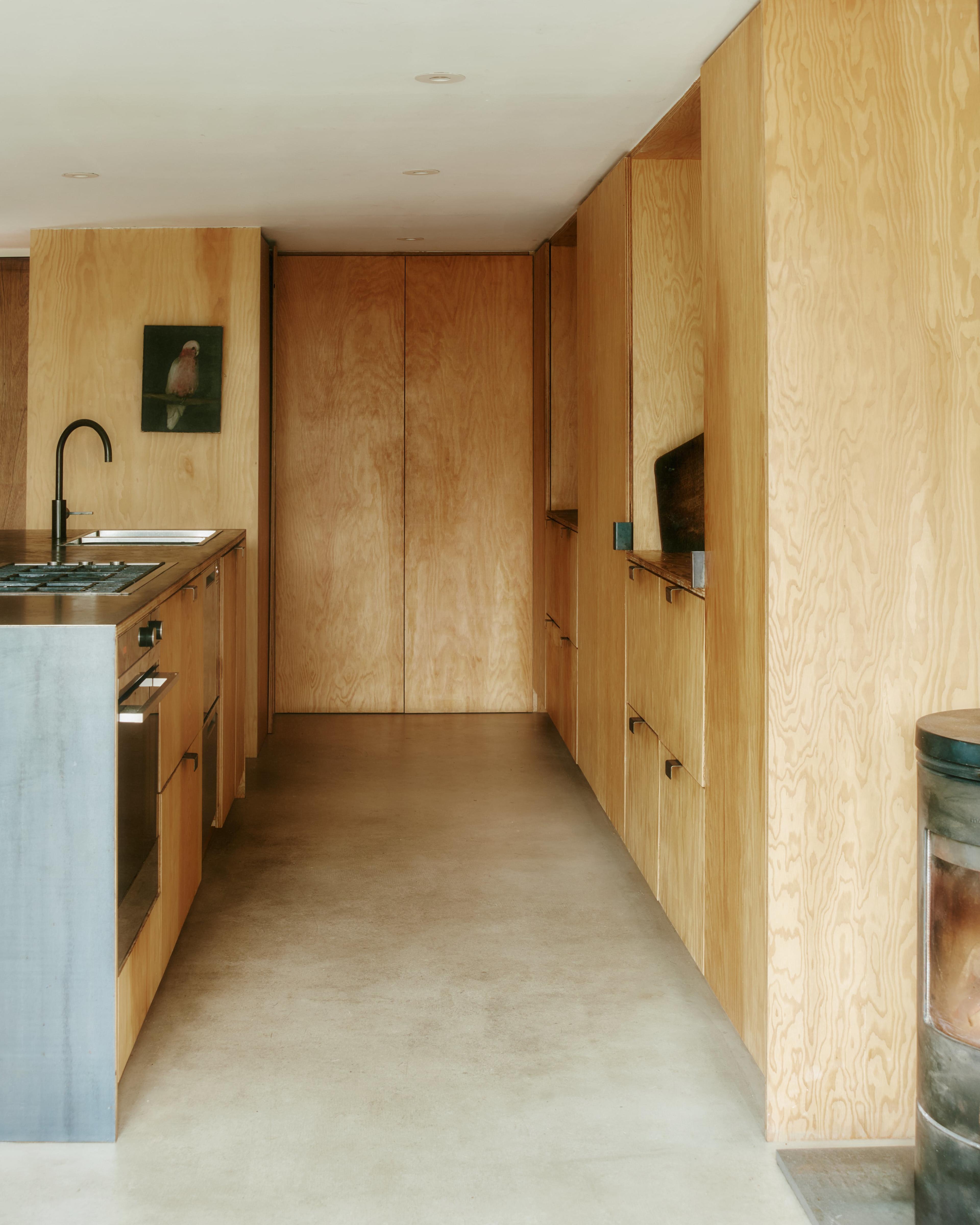The family's gathering spot is the kitchen, fitted with lacquered mahogany cabinets inspired by traditional French brasseries. A unique feature is the custom-built steel and glass cabinet, designed in collaboration with Emanuele Stamuli, which casts rainbow-like reflections when light strikes it.