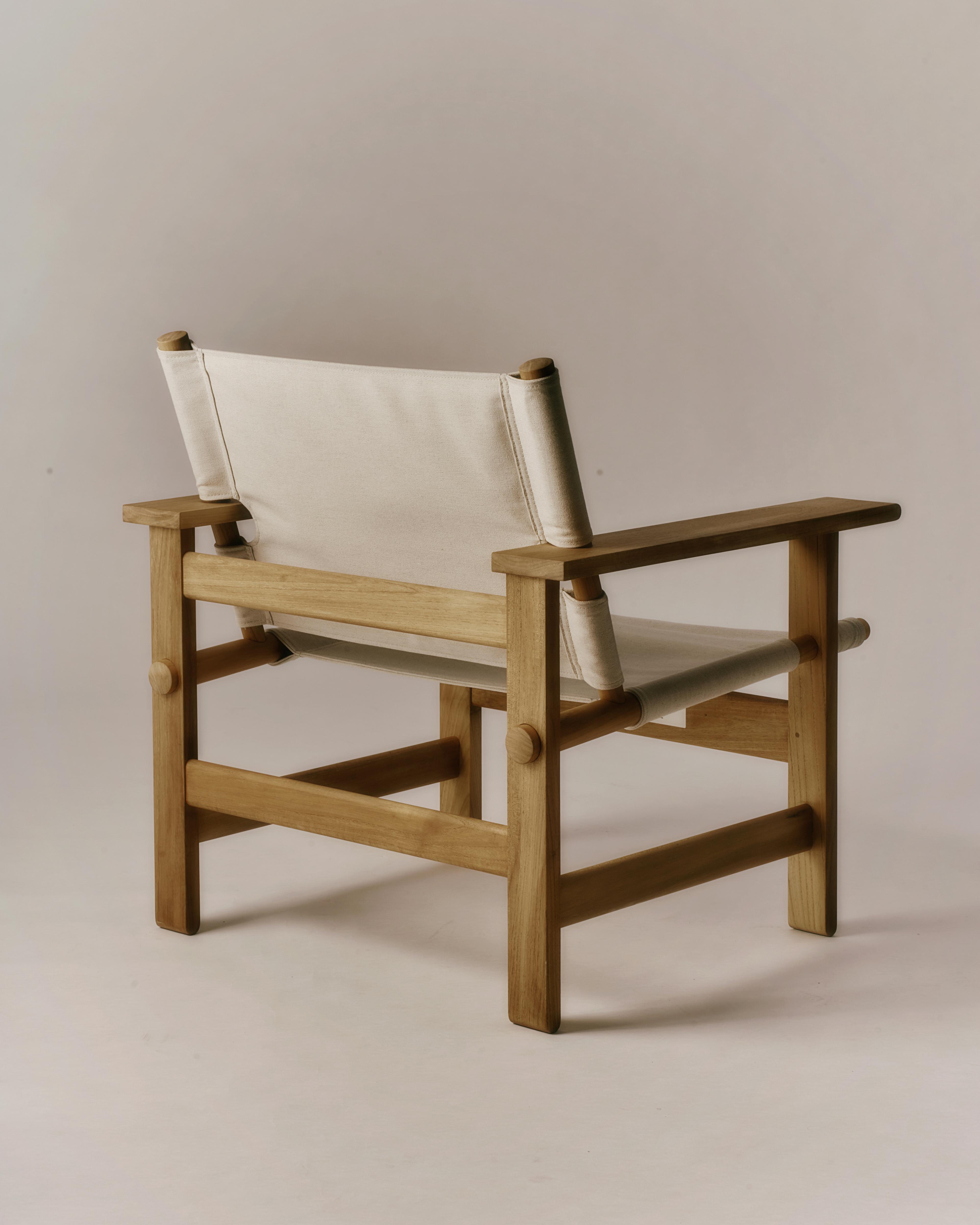 At its core, the chair has a balance of solidity and suspension. The teak frame provides permanence and precision, while the tensioned canvas seat and backrest offer subtle adaptability and lasting comfort. Materials are left to speak for themselves, without ornaments.